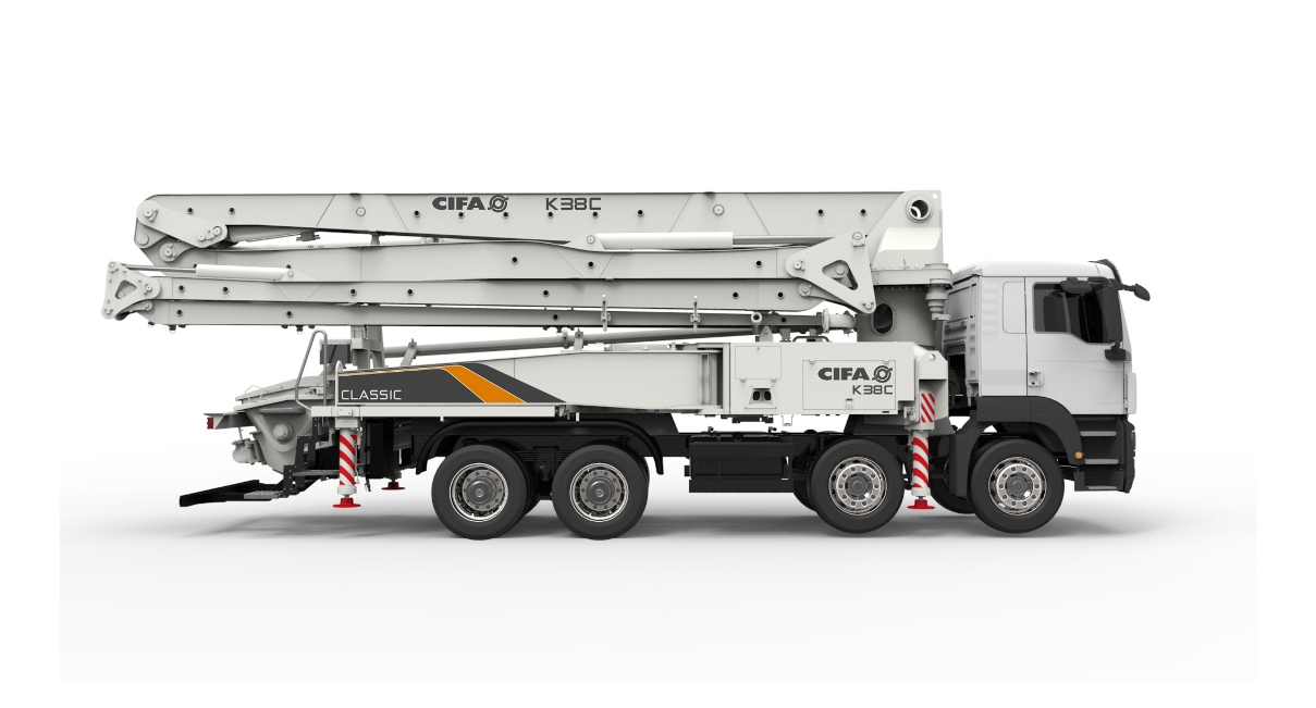 The K 38C truck mounted concrete pump is the perfect choice for small and medium sites. With its 4-sections-boom with Z-folding system it combines ease of use with a general compactness of the machine.